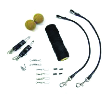 100 ft of White Nylon Braid, Pair of EZ Release Clips, Pair of 1-3/4 in Cork Stops, Pair of Single Swivel Snubbers, Pair of Eye Straps with Screws, 4 Leader Snaps